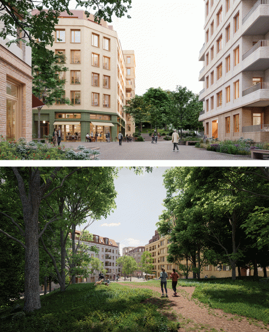 Planen har høye klima- og miljøambisjoner, der bevaring og gjenbruk står i sentrum. Mesteparten av den eksisterende bebyggelsen skal bevares, transformeres og rehabiliteres. Dette gjelder blant annet de verneverdige byggene Norgegården, Glasmagasinet og Lychegårdene, samt øvrig bebyggelse uten formelt vern. Planen vil styrke områdets særpreg og identitet ved å hensynta verneinteresser i området og tilbakeføre historiske fasader.