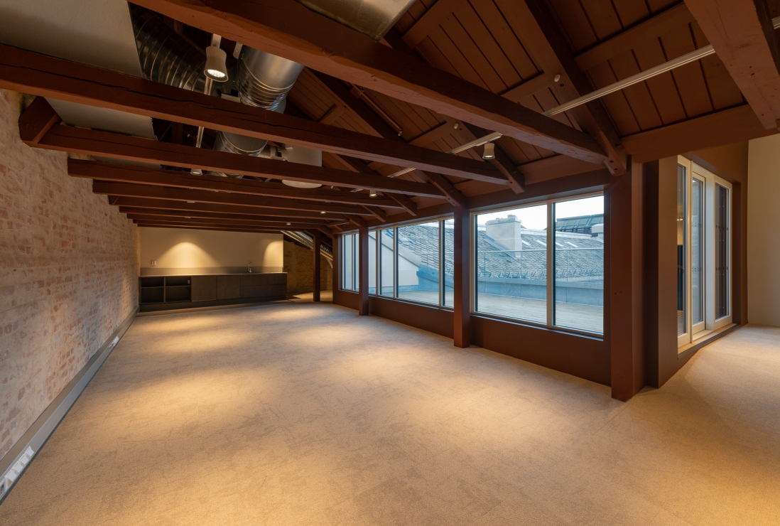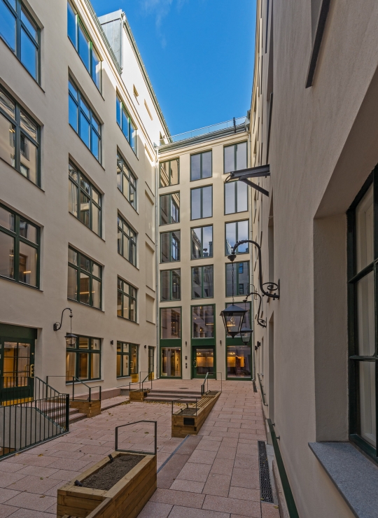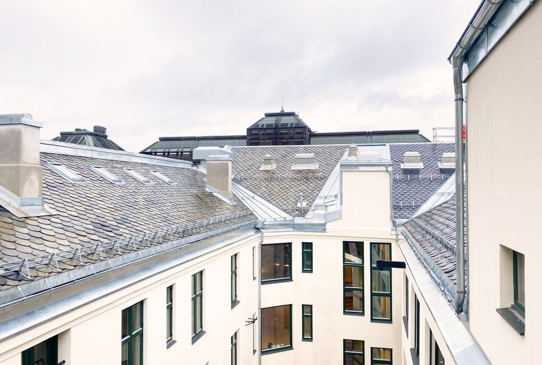 Takflatene er oppgradert og de eksisterende bærekonstruksjonene på loftet er eksponert. Bakgårdsfasadens opprinnelige større åpninger er tilbakeført. Dette har resultert i bedre lysforhold og visuell kontakt med bakgården, samt muligheten for å plassere møterom innerst i rommet. Nye toalettkjerner, sjakter med nødvendig teknikk, møterom, stillerom og interntrapper for å koble sammen de ulike nivåene i bygget er etablert. Bygningens opprinnelige karakter mot Rådhusgata er ivaretatt. Med sine nye leietakere har bygningens oppgradering bidratt til å skape mer liv og aktivitet i denne vakre delen av Kvadraturen.